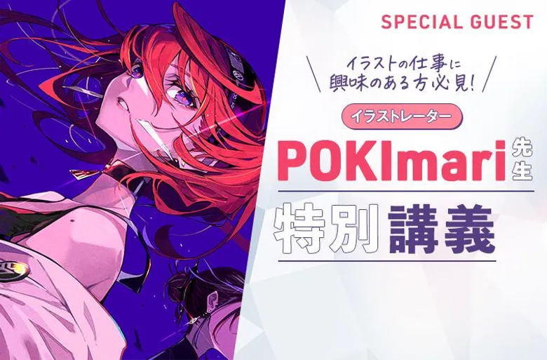 人気イラストレーターPOKImari先生が、在校生の作品をその場で添削しながら、人の目を引くキービジュアル、立ち絵の描き方を話します。またイラストレーターの仕事の進め方やルーティンなどについてもお話ししていただきます。