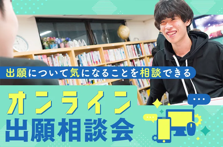 自宅からパソコンやスマホからのアクセスで参加できるオンライン出願相談会! オープンキャンパスや学校説明会に参加したいけど、遠方で参加することができない方、スケジュールが合わない方のためのオンライン出願相談会です。出願に不安や質問がある方はお気軽にご参加下さい。